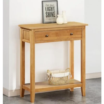 PREMIUM QUALITY CONSTRUCTION | This 70W x 32D x 80H cm hallway table is made from a solid rubberwood frame and oak veneered shelf and drawer box top for long-lasting use. This wood console table, perfect for your living room or any other room. SLEEK & MODERN DESIGN | Designed with simplicity and function in mind, this wooden console table features a minimalist profile that suits modern spaces. The oak console table’s lower shelf and wide drawer enhance both style and storage. VERSATILE FUNCTIONALITY | This table adapts to your needs as a dressing table, lamp table, telephone table, or console table. With open and hidden storage, this oak telephone table with drawers suits both decorative and practical purposes. SMART & SPACIOUS STORAGE | With one large drawer and an open shelf, this Aston Hallowood console table provides practical storage without compromising style. The oak lamp table is perfect for tucking away clutter while displaying decor. EASY ASSEMBLY & QUALITY COMMITMENT | You only have to fix only legs and shelf of the console table with supplied hardware. Its drawer box is already assembled. The Hallowood Furniture oak console table is backed with a one-year quality guarantee.