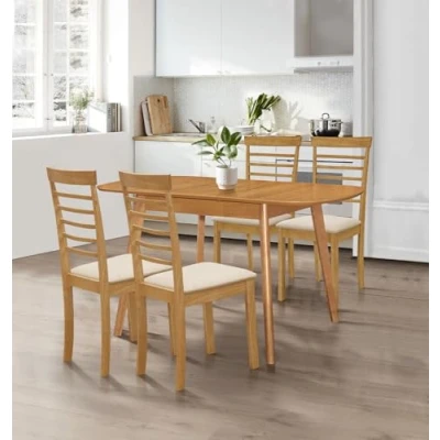 PREMIUM QUALITY CONSTRUCTION | Crafted from rubberwood with oak veneer, this kitchen table and chairs set 4 offers lacquered finish. A drop leaf table and chairs built for daily use. Measures H74xW106-136xD80cm (Table) and H94xW51xD42cm (Chairs). SLEEK & MODERN DESIGN | This butterfly dining set includes an extendable dining table designed for modern living. The dining table and chairs set 4 in light oak offers a blend of sleek style, durability, and practical functionality. VERSATILE FUNCTIONALITY | Comfort meets adaptability in this butterfly table and chairs set with light oak chairs in cream fabric seats. For intimate or larger gatherings, it combines timeless design and versatile functionality for every dining need. SUPERIOR QUALITY COMMITMENT | Transform your kitchen with a folding dining table and chairs set 4, built for strength and style. This versatile kitchen table and chairs set offers a 1-year quality guarantee for peace of mind. EASY MAINTENANCE & ASSEMBLY | Make every meal effortless with Hallowood Furniture’s dining table and chairs set 4. Quick assembly and easy upkeep bring style and convenience to your extending table and chairs for everyday family meals.
