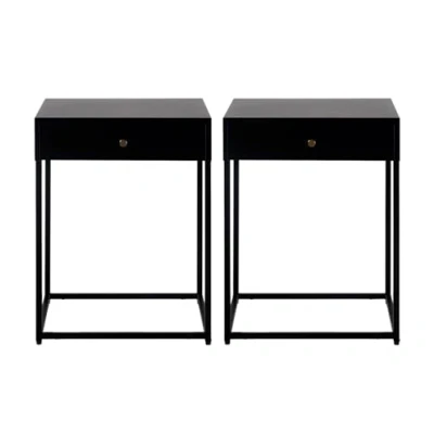 Hallowood Furniture Bewdley Black Metal Bedside Table with 1 Drawer Set of 2, Modern Coffee Magazine Side Frame for Living Room