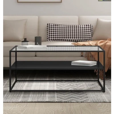 PREMIUM QUALITY CONSTRUCTION | This coffee table with a powder-coated metal frame and tempered glass top (43.2D x 101.6W x 45.7H cm) offers lasting durability and style. The sturdy large coffee table adds a sleek touch to your modern living space. SLEEK & MODERN DESIGN | With its modern appeal, this coffee table with storage boasts a black metal frame and tempered glass top. The design of this living room table makes it an ideal addition to any living space, offering both style and functionality. VERSATILE FUNCTIONALITY | This glass coffee table is designed with versatility in mind, offering a spacious surface for all your essentials. The added shelf under the coffee table ensures additional storage or display space for your décor and belongings. SMART & SPACIOUS STORAGE | The rectangular glass coffee table offers ample storage with a large top for essentials. The additional shelf in the black and glass coffee table keeps books, decor, and other items neatly organized and easily accessible. EASY TO MAINTAIN & QUALITY COMMITMENT | This rectangular coffee table offers durability and style. Simple to assemble with included bolts and an Allen key, and a one-year quality guarantee for peace of mind.
