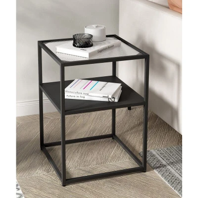 PREMIUM QUALITY CONSTRUCTION | This black metal side table is crafted from powder-coated black steel with a glass top, built to support up to 50kg. The black side table measures 40D x 40W x 55H cm, offering sturdy, compact functionality. SLEEK & MODERN DESIGN | Designed with a sleek black frame, this black bedside table brings a touch of sophistication to any interior. Its modern aesthetic blends with contemporary décor, making the glass side table a stylish accent in any space. VERSATILE FUNCTIONALITY | This table is perfect as a lamp stand, coffee table, or bedside table—adaptable to suit your lifestyle. Whether in the living room, hallway, or bedroom, this hallowood bedside table offers both practicality and style. SMART & SPACIOUS STORAGE | With its innovative storage shelf, these side tables for living room offer a dedicated spot for displaying ornaments or stashing reading materials. The side table’s clever layout maximizes space without sacrificing style. EASY TO MAINTAIN & QUALITY COMMITMENT | This black metal side table offers durability and style. Simple to assemble with included bolts and an Allen key, and a one-year quality guarantee for peace of mind.