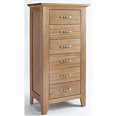 AmazonSTURDY AND DURABLE | Hallowood Furniture chest of drawers is made with Solid oak frame & oak veneered panels. These chests of drawers finished with a long-lasting, water-resistant lacquer will complement a wide range of home themes. AMPLE STORAGE | Six drawer box constructed with dovetail joints. Provides you more storage options, and ample space. It produces a neat and tidy environment in your bedroom or living area. Dimensions in centimeters: 40D x 59W x 115H. MULTIFUNCTIONAL | You can use it as a showcase table. Decorate your room by placing some decorations on top. Bedroom, living room, dining room, kitchen, foyer, hallway, and waiting area are all good options for it. PRE ASSEMBLED | Ready to use and fully assembled, you don’t need to sweat on how to build the unit. It is ready for use the moment it’ll arrive at your front door. EASY TO CLEAN | Hallowood Light Oak chest of drawer’s surface is smooth and leveled. It is simple to clean with a damp or dry cloth, saving you time.