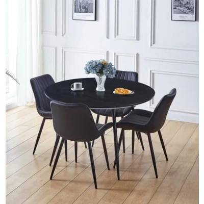 PREMIUM QUALITY CONSTRUCTION | Designed for strength, this dining table set features a round table (H75 x W120 x D120cm) and four chairs (H84 x W52 x D60cm). The round table and chairs set 4 combines black wood effect top with sturdy leather seating. SLEEK & MODERN DESIGN | This chic table and chairs dining pairs a black wood effect surface with bonded leather seating for a timeless modern look. The table and chairs set 4 transform your dining area into a sophisticated setting. VERSATILE FUNCTIONALITY | Designed to adapt, this 4 seater dining table and chairs suit both modern homes and professional spaces. The round dining table with chairs combine elegance and practicality, fitting effortlessly into any setting SUPERIOR QUALITY COMMITMENT | The circular table and chairs set 4 black deliver lasting strength and timeless style for everyday living. The table and chairs set are assured by a one-year quality guarantee, reflecting our commitment to quality. ASSEMBLY MADE EASY | Enjoy stress-free setup with this kitchen table and chairs set 4 that includes clear guidance. The kitchen table and chairs can be assembled swiftly, saving you time and effort.