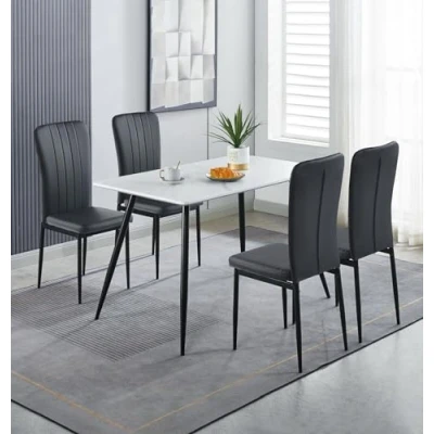 PREMIUM QUALITY CONSTRUCTION | Crafted from a premium MDF top laminated small faux marble dining table at 70D x 120W x 75Hcm, and 4 chairs at 56D x 42W x 96H cm, both supported by metal legs, this set offers a long-lasting build. SLEEK & MODERN DESIGN | This white marble effect top kitchen table and chairs set 4 has an ergonomic design, in black faux leather cushion. With matching powder-coated metal legs, this dining set for 4 offers a sleek industrial vibe for modern setup. VERSATILE FUNCTIONALITY | This rectangle marble dining table and chairs set is ideal for breakfast corners, apartments, offices, or cafes. These dining room sets make it suitable for casual dining, or even cosy client meetings. SUPERIOR QUALITY COMMITMENT | Backed by a one-year quality guarantee, this marble table and chairs reflects Hallowood Furniture’s dedication to quality. Every piece is made to meet the highest standards for safety and durability. ASSEMBLY MADE EASY | This marble dining table and chairs set 4 comes with high-quality easy to assemble metal legs. All packages include instructions manuals. A stylish, low-maintenance choice of dining table set for any modern space.