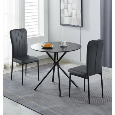 PREMIUM QUALITY CONSTRUCTION | The small dining table and 2 chairs combine a dining table (H75 x W90 x D90 cm) with black powder-coated legs, and chairs (H96 x W42 x D56 cm) that echo the same sturdy metal design with elegant faux leather seats. SLEEK & MODERN DESIGN | The modern small round dining table for 2 showcases a chic black finish with slim powder-coated legs and faux leather seats, perfect for elevating the look of compact dining areas or contemporary spaces. VERSATILE FUNCTIONALITY |Whether for mealtimes, meetings, or morning coffee, the 2 person dining set black adapts easily to any setting. The compact size of the small dining table and chairs makes them ideal for small spaces and stylish interiors. SUPERIOR QUALITY COMMITMENT | Quality you can count on—crafted for daily use, this small black kitchen table for 2 is built with durable materials and smart design. A dependable round table and chairs set 2 backed by a free 1-year quality guarantee. ASSEMBLY MADE EASY | Assembly of the black dining chairs and table is simple and hassle-free, thanks to the included step-by-step guide. With minimal effort, the 2 seat dining round black table and chairs can be built quickly and securely.