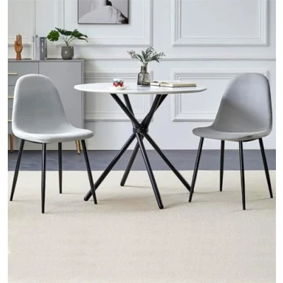 PREMIUM QUALITY CONSTRUCTION | Designed for everyday use, the table and chairs set (H75 x W90 x D90 cm) includes a laminated white marble effect top table, upholstered grey fabric chairs, and black metal legs for long-term performance. SLEEK & MODERN DESIGN | The round dining table with chairs set showcases refined style with a white marble effect top and soft grey fabric. Built with sleek black legs, the kitchen table set delivers a modern statement in any setting. VERSATILE FUNCTIONALITY | Ideal for homes, studios, or commercial spaces, the round dining room table and chairs set offers flexible use without compromising on style. With its compact form, the table with chairs set fits into small spaces. SUPERIOR QUALITY COMMITMENT | Backed by a one-year quality guarantee, this round dining table for 2 reflects Hallowood Furniture’s dedication to quality. Every piece is made to meet the highest standards for safety and durability. ASSEMBLY MADE EASY | This small round dining table and 2 chairs comes with high-quality easy to assemble metal legs. All packages include instructions manuals. A stylish, low-maintenance choice for any modern space.