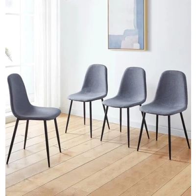 CUSHIONED FOR COMFORT & DURABILITY | Experience comfort with our cushioned dining chairs in dark grey fabric that resists dirt and spots. These grey dining chairs set of 4 have sturdy black metal legs for durability. It measures H86 x W45 x D54 cm. SLEEK & MODERN DESIGN | Transform your space with these 4 dining chairs that blend style and function effortlessly. Ideal for dining rooms, kitchens, offices, or cafés, this set of kitchen chairs adds a contemporary touch to any setting. ELEVATE YOUR SEATING EXPERIENCE | Designed for ultimate comfort, these dark grey dining chairs feature an ergonomically curved backrest and padded seat, offering excellent support for your waist and buttocks during meals or casual gatherings. SUPERIOR QUALITY COMMITMENT | Crafted from high-quality materials, this dark grey dining chair is built to last. Hallowood Furniture backs them with a one-year quality guarantee, built to last chairs for home or business use. EASY MAINTENANCE & ASSEMBLY | These dining chairs x 4, featuring sturdy metal legs and an easy-to-follow instruction manual for an easy setup. Perfect for quick assembly, these grey dining chairs with black legs are a practical choice for any space.