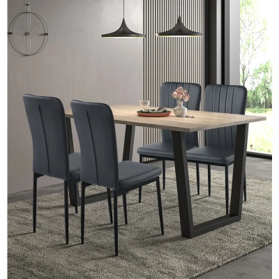 PREMIUM QUALITY CONSTRUCTION | The dining table with chairs set 4 is crafted from MDF tabletop, U-shaped metal legs, and black faux leather chairs. Its large dining table measures 150W x 77H x 80D cm and each chair is 42W x 96H x 56D cm in size. SLEEK & MODERN DESIGN | Seating gets a stylish upgrade with 4 black dining chairs made to stand out. Paired with a coordinating table, the kitchen table and chairs set 4 brings structure and sophistication to modern spaces. VERSATILE FUNCTIONALITY | A smart dining table 150cm design makes this dining table for 4 a must-have. As a stylish dining table set for 4, it fits perfectly into modern spaces, offering comfort, versatility, and a contemporary feel. SUPERIOR QUALITY COMMITMENT | Experience lasting reliability with this black faux leather dining chairs set of 4 and a durable large table. The Hallowood Furniture Dudley Dining Set includes a one-year quality guarantee for peace of mind. ASSEMBLY MADE EASY | Quick to assemble and built to impress, this laminated oak and black dining table and chairs set 4 combo includes a spacious dinner table and premium dining chair leather seating ideal for any dining area.