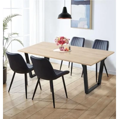 ManoManoThis stylish and ultra-modern dining table, featuring distinctive black legs and an appealing light oak effect table-top. This combination creates a contemporary and fresh look that will take center stage in any diner, kitchen, or dining room. With its spacious design, this table provides ample room for the whole family to gather and enjoy meals together. Its clean and minimalist aesthetic makes it versatile for various uses, such as a home office desk or a gaming table, offering functionality beyond traditional dining. The light oak tones of the table are a timeless favorite, blending seamlessly with any interior design and décor choice in your home. Its versatility is unmatched, as it effortlessly adapts to different styles and settings. Rarely do you find a piece that is as practical and versatile as it is stylish and eye-catching, and this beautiful dining table ticks all the boxes. It's a must-have for those seeking a statement piece that combines functionality with contemporary