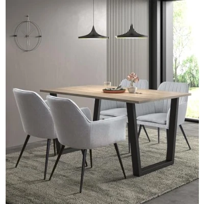 Hallowood Furniture Dudley Dining Table and Chairs Set 4, Light Oak with U Shaped Metal Legs Grey Fabric Armchairs, Room Sets for Home or Cafe (150cm)