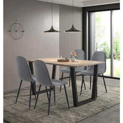 PREMIUM QUALITY CONSTRUCTION | The table and chairs set 4 features a robust dining table (W150 x H77 x D80 cm) with chunky U-shaped legs. Four dark grey fabric chairs (H86 x D54 x W45 cm) ensure lasting strength and comfort. SLEEK & MODERN DESIGN | With clean lines and a modern oak effect, this dining table and chairs set offers a fresh and elegant design. Perfectly balanced, the dining table with chairs bring both sophistication and versatility to your home. VERSATILE FUNCTIONALITY | The multifunctional dining table and 4 chairs transitions effortlessly from family dining to casual entertaining. Wherever placed, the dining room table and chairs set 4 offer a perfect balance of style and practicality. SUPERIOR QUALITY COMMITMENT | Enjoy confidence in your purchase with these tables and chairs, crafted with durable materials. This Hallowood Furniture dining table and chairs set comes with a one-year quality guarantee you can rely on. ASSEMBLY MADE EASY | Enjoy hassle-free setup as this dinner table set comes with easy-to-follow manuals. The kitchen table and chairs are built with user-friendly fittings for smooth assembly.