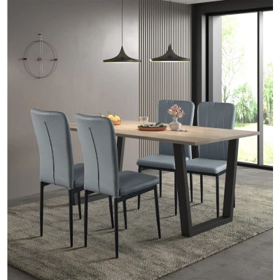 ManoManoHallowood Furniture Dudley Large Dining Table and Chairs Set 4, Dinner Table (180cm) with Chunky U Shaped Metal Legs & Grey Faux Leather Chairs, Dining Room Sets for Home & Cafe