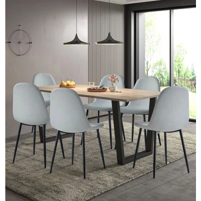 PREMIUM QUALITY CONSTRUCTION |Expertly made, this table and chairs set 6 pairs a 180W x 77H x 80D cm dining table with 86H x 45W x 54D cm chairs, combining thick MDF tops, robust metal legs and fabric upholstery for enduring strength and style. SLEEK & MODERN DESIGN | Crafted for modern living, this dining table and chairs combine clean lines, oak tones, and refined grey fabric in one cohesive look. Designed to impress, the table and chairs bring elegance and function to your dining space. VERSATILE FUNCTIONALITY | Designed for flexible living, this dining table and chairs set combines modern style with everyday practicality. From family dining to working from home, the table and 6 chairs meet your needs with ease. SUPERIOR QUALITY COMMITMENT | Enjoy confidence in your purchase with this 6 seater dining table with chairs, crafted with durable materials. This kitchen table and chairs set 6 comes with a one-year quality guarantee you can rely on. ASSEMBLY MADE EASY | Enjoy hassle-free setup as this dining room table and chairs set of 6 comes with easy-to-follow manuals. The dining table with 6 chairs is built with user-friendly fittings for smooth assembly.