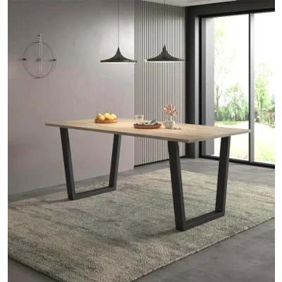 ManoManoGENERAL DESCRIPTION This stylish and ultra-modern dining table features distinctive black legs and a light oak effect table-top. Its contemporary design makes it a perfect centerpiece for any dining area. The spacious table provides enough room for the whole family and can also serve as a home office desk or gaming table. The light oak tones are classic and versatile, fitting well with various interior designs. TECHNICAL SPECIFICATIONS Table top distressed finish Metal legs Sturdy and durable Material: MFC board and metal legs Finish: Laminated Colour: Multi-colour Height: 77cm Width: 180cm Length: 80cm INSTALLATION Assembly required: Legs need fixing.