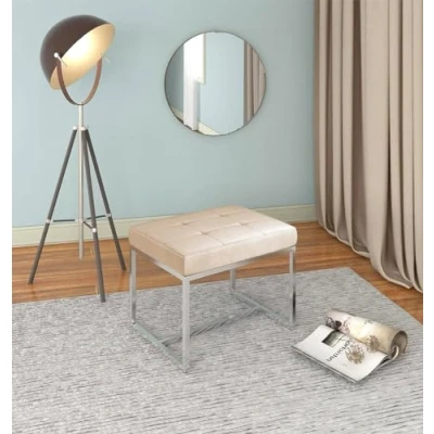 ManoManoGeneral description This elegant stool, soft and sumptuous with velvet, is a versatile piece of furniture that will bring a touch of class and elegance to any setting. The stylish chrome legs complement the tone of the fabric superbly, ensuring sturdiness and support. A home interior staple, this velvet stool blends classic styling with a hint of the contemporary, making it suitable for various uses, such as a dressing table stool or a footstool. Its neat and compact design allows it to be accommodated anywhere in the home, ensuring it looks superb in any setting. Technical specifications Height: 47 cm Width: 45 cm Length: 46 cm Material: Metal and Fabric Finish: Chrome Colour: Light Brown Installation Assembly Required