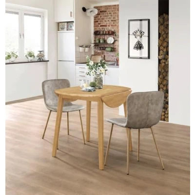 PREMIUM QUALITY SOLID WOOD | Crafted from 100% rubberwood, this drop leaf table and chairs set 2 features strong legs and curved taupe seat. A drop leaf dining table measuring W61-92 x H74 x D92cm. Its chairs measure W51 x H76.5 x D44cm. SLEEK & MODERN DESIGN | A small oak dining table for 2 in a round drop leaf design with a water-resistant light oak finish. The sleek table and chairs set 2 delivers comfort and convenience in any modern apartment or studio. VERSATILE FUNCTIONALITY | Perfect for modern dining room sets that blend elegant design with everyday functionality. This elegant and functional Hallowood drop leaf dining table and chairs offer space-saving function for smaller interiors. SUPERIOR QUALITY COMMITMENT | Durable drop leaf table and taupe dining chairs set of 2 combines space-saving design with lasting quality. This 2-person dining set comes with a free 1-year quality guarantee from Hallowood Furniture. EASY MAINTENANCE & ASSEMBLY | A practical small dining table and 2 chairs with a folding dining table design, easy to assemble with included hardware and instructions. It’s low-maintenance and ideal for modern kitchens or small-space living.