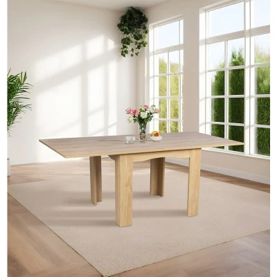 PREMIUM QUALITY CONSTRUCTION | Crafted from MDF with laminated oak effect finish and metal legs, this extendable table is a practical space-saving foldable dining table solution. At H73/75.5 x W80-160 x D78cm, it is ideal for everyday use and hosting. SLEEK & MODERN DESIGN | This flip table blends seamlessly with any décor and doubles as an extending dining table for extra guests. Its light oak finish and versatile design make it a smart, stylish choice for urban living. VERSATILE FUNCTIONALITY | Maximise space with this folding kitchen table featuring a smooth extendable table top. Designed for any space, it easily transitions from a compact form to a full dining setup ideal for family meals. SUPERIOR QUALITY COMMITMENT | Expandable table functionality meets long-term durability in this dining extendable table. Perfect for any space, it's backed by Hallowood Furniture’s trusted one-year quality guarantee for added assurance. EASY MAINTENANCE & ASSEMBLY | This convenient oak dining table features an extendable top and sturdy legs that are easy to fit with included tools. The dining room table’s wipe-clean surface provides lasting elegance with minimal effort.