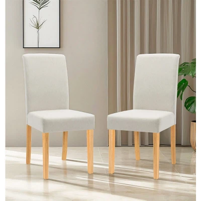 Hallowood Furniture Premium Linen Straight Back Beige Fabric Dining Chairs, Set of 2 Kitchen Chairs with Solid Wooden Legs, Modern for Room, Home, Restaurant & Café