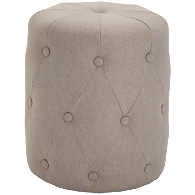 ManoManoGeneral description The Hallowood Furniture Premium Padded Round Foot Stool in Charcoal Grey is a stylish and versatile addition to any living room or bedroom. This linen fabric stool features a contemporary design with a button detail, making it a perfect fit for various interior styles. It can serve as a footstool or an occasional seating option for both adults and children. Technical specifications Height: 46cm Width: 38cm Depth: 38cm Material: High-quality wood and fabric Color: Charcoal Grey Installation Pre-assembled and ready to use upon delivery Usage Can be used as a footstool or additional seating Ideal for smaller gathering spaces