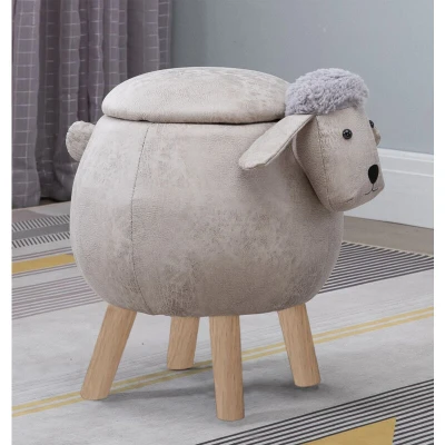 Hallowood Furniture Upholstered Sheep Foot Stool for Kids and Adults in Brown Fabric Wooden Legs, Animal Storage Ottoman with Lid Living Room Toy Chest Bedroom