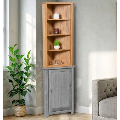 Hallowood Furniture Waverly Oak Corner Storage Cabinet Top, Light Wooden Unit with 3 Adjustable Shelves for Bedroom, Shelf