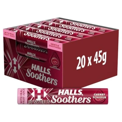 PACK OF 20: A multipack of 20 cherry delicious soothers with refreshing liquid centres for gentle and fast acting throat care KEY FEATURES: Vegetarian-friendly lozenges with pleasant fruit juices perfect to share TASTY FLAVOURS: Cherry flavour that's both soothing and satisfying; these lozenges are sure to please your taste buds ON THE GO RELIEF: Carry a few in your bag for quick relief on the go when you need it most BENEFITS: These soothers offer a pleasant taste experience while caring for your throat, making them ideal for everyday use