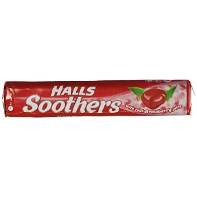 Halls Soothers, Strawberry Flavour, Made with Real Fruit Juice, Gentle Soothing, 20 x 45 g