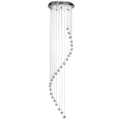 One of the most captivating elements of the Hallway pendant is its unique design. The ceiling plate houses five GU10 lamps, which are thoughtfully recessed and directed downwards to provide focused illumination. The pendant’s striking feature is the array of hanging strands, each differing in length, which gracefully cascade down to showcase beautifully crafted crystal balls at their ends. This design not only creates a visually appealing spiral look but also adds a touch of sophistication to any space.