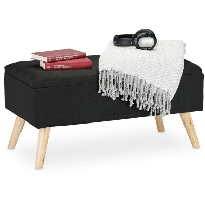 Hallway Storage Bench, Padded, Wooden Legs, Fabric Cover, HxWxD: 39.5 x 79.5 cm, Black Relaxdays