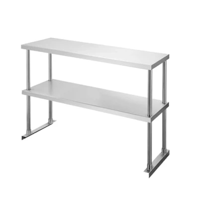 Adjustable Double Overshelf Adjustable lower shelf lets you freely change the height to fit your needs and add valuable storage space. Upgraded square-corner shelf sits flush against walls and corners to reduce wasted gaps and maximize usable space. Multiple Application** just settle it with your prep & work table in kitchen, garage, workshop, bar, restaurant, laundry, school, hospital, warehouse or any other commercial setting, can be regarded as perfect repair or workbench Large & Practical Storage**2 layers: 360 lb top shelf weight capacity; 220 lb undershelf weight capacity, dimension 12 x 36 inches, offer you enough storage room for microwave oven, kitchen utensils or any other tools Durable and Safe Material** certification offers you better health protection. 18-gauge type 430 stainless steel and polished surface offer greater rust and corrosion resistance. Using rag or paper you can easily clean it quickly Customer Guarantee**24 hours reply, 30 days refund. Never worry about the quality of our products. We always pay the most attention to your experience