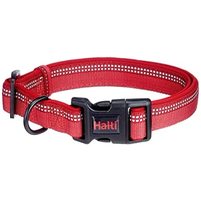 HALTI Collar, Size Large, Red, Best Comfy Dog Premium Puppy Nylon, Neoprene Padded, Reflective, Easy to Fit & Use, For Small, Medium Large Dogs