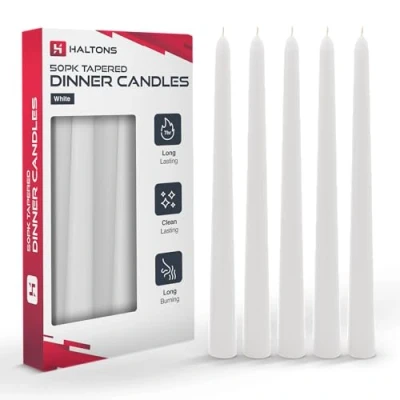 Haltons Long Tapered Candles Multipack, Unscented Dinner 7 Hour Burn Time, Perfect for Parties, Events, Weddings & Home Decor, Clean Burning, Taper Fits Most Candle Holders