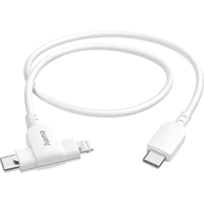 Hama 2 in 1 USB C to or Lightning MFI Charging Cable, 1.5 m, White