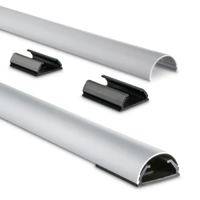 Aluminum Cable Grommets for Added Order:Lay cables and wires safely and protect them from damage, whether on the wall, stand, floor, back of device, desk, shelf, etc. Flexible installation: cable duct for gluing or screwing, semicircular, space-saving, flexible and robust, can be shortened with a hacksaw Discreet cable management: the top clips easily, can be quickly removed if necessary, also ideal for stylish cable laying during wall and ceiling mounting, anodized aluminium coating Universal Cable Management - Holds up to 5 cables, ideal for power cables, network cables, patch cables, video cables, phone cables, audio cables, satellite cables, antenna cables, speaker cables, toslink cables, HDMI cables, etc. Box contents: 1 x silver cable duct (3.3 cm x 110 cm x 1.8 cm), mounting material, 1 x user manual (English language not guaranteed)