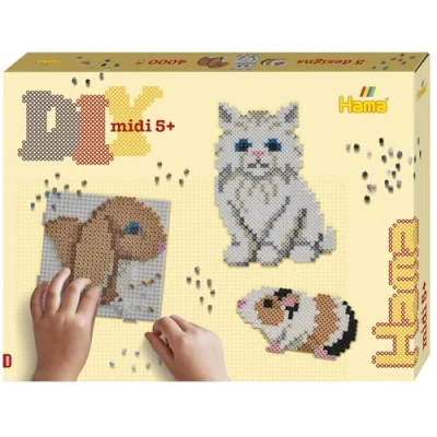 Hama Beads Gift Box Cute Pets Approx. 4.000 Fuse Beads, 2 Large Square Pegboards, Printed Design Sheet, Instructions & Ironing Paper Mosaic Decoration Arts Craft for Creative Children Ages 5+