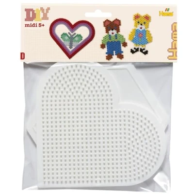 Pen plate for original Hama ironing beads made of white plastic Contents: heart pencil plates (approx. 16 x 17.5 cm) and hexagon (approx. 16.5 x 14.5 cm) For ironing beads Midi: 5.0 mm diameter. Bead spikes promote fine motor skills as well as understanding of colours and shapes Suitable for children over 5 years, Manufacturer: DAN Import