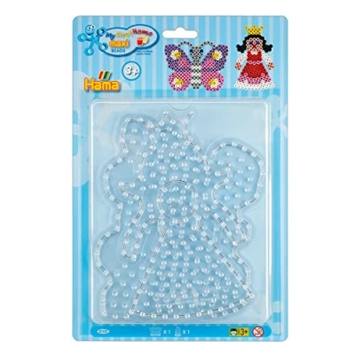 Plates: discover in this blister pack 2 plates, for HAMA MAXI size ironing beads, a butterfly and a princess. For children: the MAXI HAMA range of iron-on beads is suitable for children over 3 years. Simply place the beads on the plate to play Cover the design with the ironing paper and then iron with very hot iron without steam (ironing is left to adult care). Remove the pattern obtained from the base plate which is reusable.