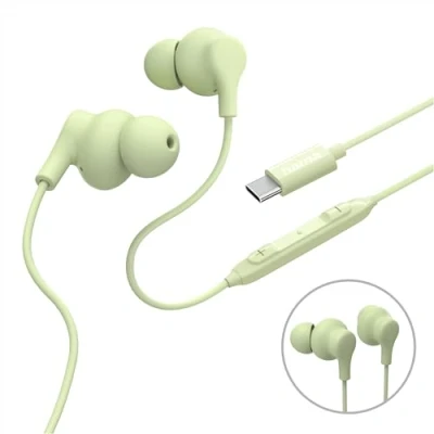 Hama Curly In Ear Headphones with Microphone Cable Kink Protection USB C Green