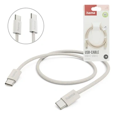 Hama Fabric USB C Charging Cable, 1 m, Nylon, Beige