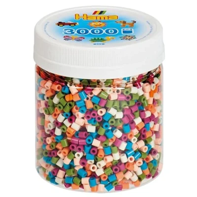 Tin with approx. 3,000 Hama iron-on beads in a mix of 6 colours Contains 5 mm diameter midi beads, these are recommended for children aged 5 and up, ironing should be done by an adult Craft beads are versatile and are suitable for making pixel pictures, small figures or for sewing and threading Craft with beads promotes concentration, fine motor skills and creativity in a playful way Original Hama ironing beads and accessories are made of harmless plastic (free from plasticisers such as BPA and phthalates), Manufacturer: Malte Haaning Plastic A/S