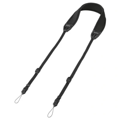 Camera strap with practical quick-release fasteners, especially suitable for attaching to cameras with eyelets The strap ends can be quickly and easily removed on the quick release High wearing comfort thanks to elastic webbing Particularly durable thanks to super elastic neopren Box contents: 1 "Loop 130" camera carrying strap