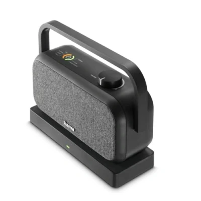 Loudspeaker for TVs, 2.4 GHz Station plus Bluetooth, Portable, Stereo Sound and image in harmony: with the 2.4 GHz radio connection, you can enjoy TV programmes, your favourite films and serials interference free and without a time lag Charge, transfer, store: the charging station transfers the audio signal and acts as a holder for the wireless speaker when not in use Instantly in 2.4 GHz radio: once the charging station is plugged into the TV, the loudspeaker connects automatically every time This TV loudspeaker has it all: 2x 5 Watts of music performance and stereo deliver optimised sound when watching TV be it or a movie
