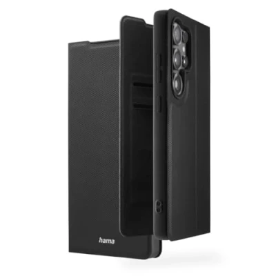 Hama Mobile Phone Case for Samsung Galaxy S25 Ultra (Mobile Case, with Card Slot, Stand Function, Extra Protection of Display and Camera, Magnet, Flip Soft) Black