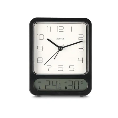 Hama Pag Alarm Clock, with Thermometer/Hygrometer, Non Ticking, Black
