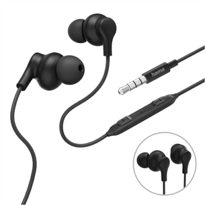 Hama Popply 3.5mm In Ear Headphones with Microphone Cable Kink Protection Black