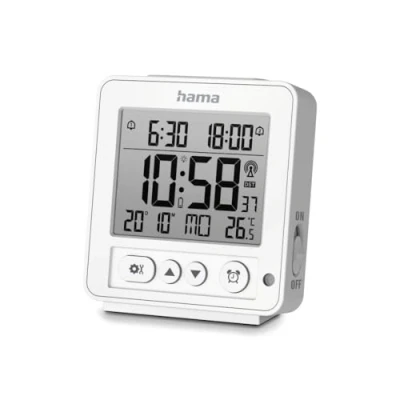 Hama Rhodos Digital Radio Controlled Alarm Clock, LCD, White
