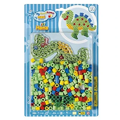 Hama Set of Dinosaurs with Approximately 250 Colourful Maxi Iron On Beads Diameter 10 mm pegboard and Paper Included Creative Craft Fun for Young Old'
