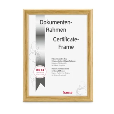 Amazon MarketplaceIdeal for certificates and documents in DIN A4 format Rounded, washed quality glass Film-covered plastic strip for long-lasting frame colours With table stand and hanging fitting in portrait and landscape format