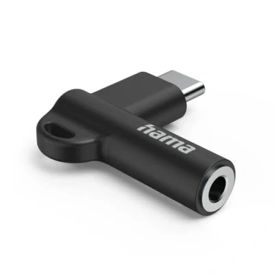 Hama USB C AUX Adapter 3.5mm Female Jack 90 Angled Plug, Black
