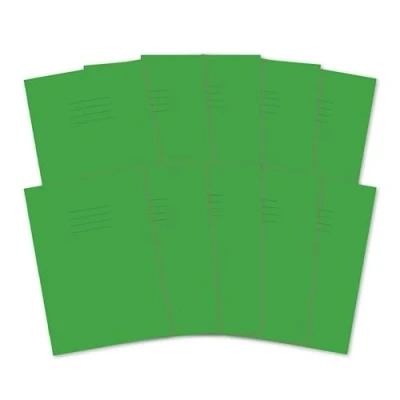 A4 (210 x 297 mm) exercise book Light Green, 225 gsm cover 48 pages, 8 mm Ruled and Margin Carton of 10 books Quality 75 gsm paper